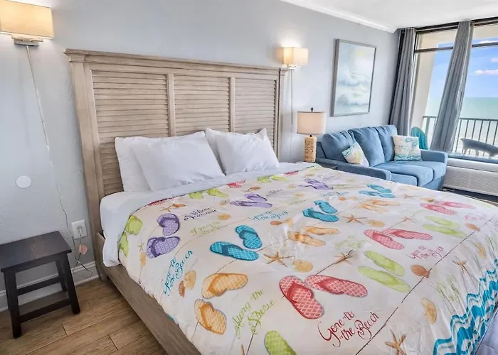 The 37 m² King Bed, Studio Oceanfront, Indoor Heated Pools! Myrtle Beach offers easy entry to such city sights as J C Video Games, situated merely 6 minutes' walk away. 4.4 km from the Apache Pier, this beachfront apartment includes a private swimming pool as well as a hot tub.